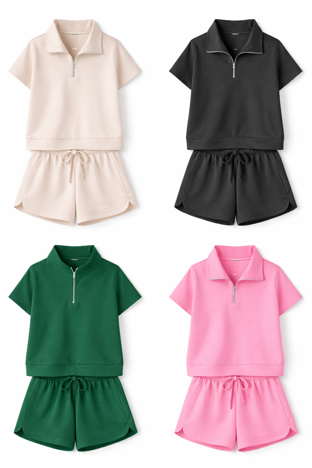 Two-piece set: high-neck half-zip top + dolphin shorts